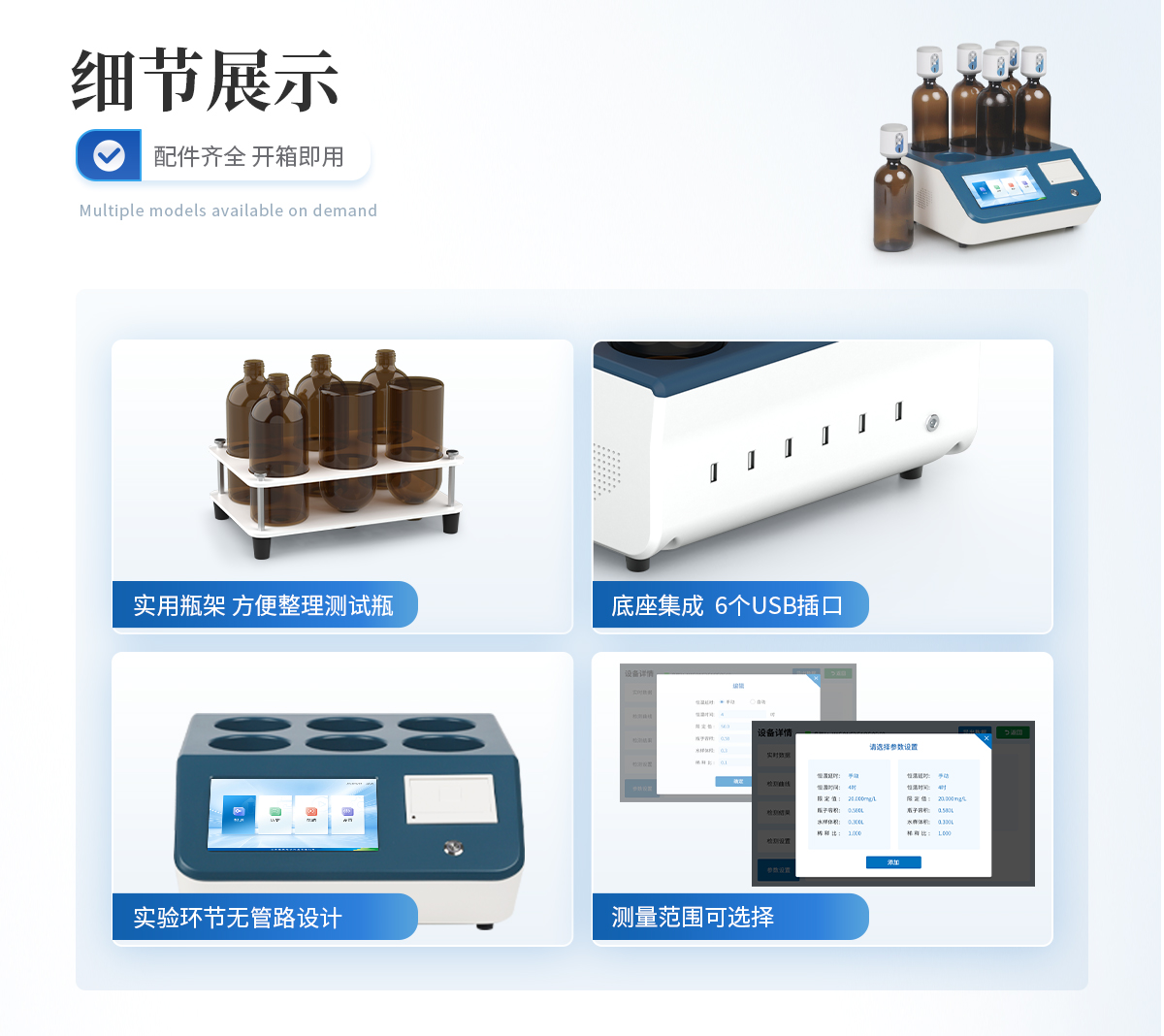 生化需氧量(BOD)測定儀是參考****《HJ505-2009》5日培養(yǎng)法,模擬自然界中有機物的生物降解過程,采用簡單、安全、可靠的無汞壓差感測法測量水中BOD濃度;全智能化設計,**的研發(fā)工藝和設計制造,實驗過程無需實驗人員值守;適用于排污企業(yè)、環(huán)境監(jiān)測、污水處理廠、第三方檢測機構、科研、高校等領域的生化需氧量測定。