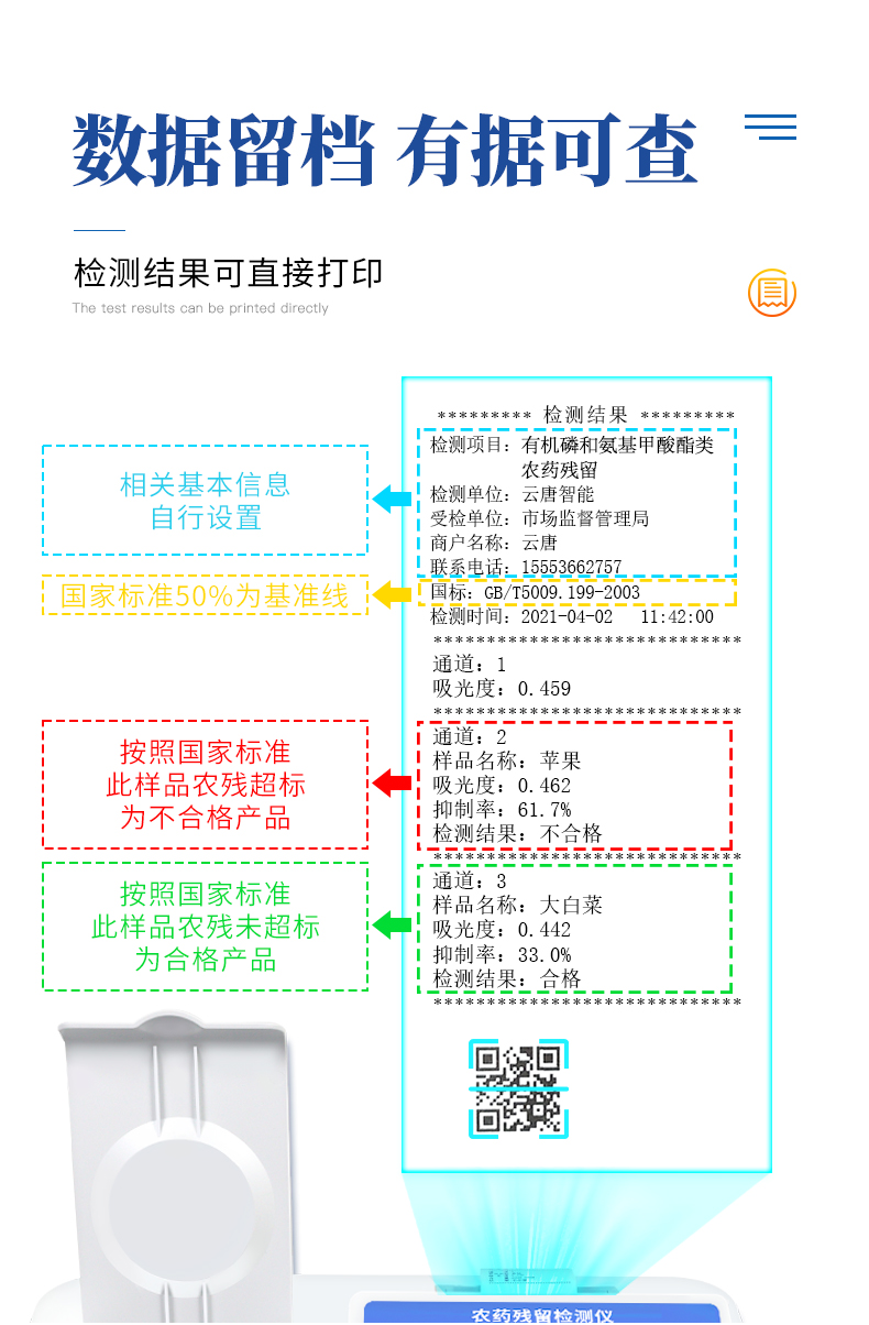 | 安卓智能操作系統,采用更加**和人性化操作,儀器具有網線連接、wifi聯網上傳、GPRS無線遠傳功能,快速上傳數據。 | 智能化程度高,儀器具有自檢功能:具有開機自檢和調零功能,具有自動檢測重復性功能。 | 檢測通道:≥12個檢測通道,可以同時測試多個樣品,每個樣品由程序控制分別獨立工作,不會互相干擾。 | 配備新一代嵌入式熱敏打印機,可選擇手動打印或者自動打印,檢測完成可自動打印檢測報告和二維碼。 | 采用標準USB2.0接口設計,支持U盤存儲,免驅動安裝,方便數據的存貯和移動,并可隨時與計算機直接相連,并且可用計算機控制儀器。實現數據查詢、瀏覽、分析、統計、打印等。 | 儀器帶有監管平臺。檢測結果可直接無線上傳。進行數據分析處理,檢測酒品等長短期動態,達到問題預估、預警。 | 儀器具有品類多種類樣品菜單庫,可靈活選擇檢測樣品,不同的檢測通道可同時檢測不同的樣品項目。 | 樣品處理簡單省力,整體操作快速、安全、便捷。 | 儀器具有自身保護功能,可設置用戶名及密碼,防止非工作人員操作等。 | 儀器具有重新校準、鎖定、恢復出廠設置功能。 |