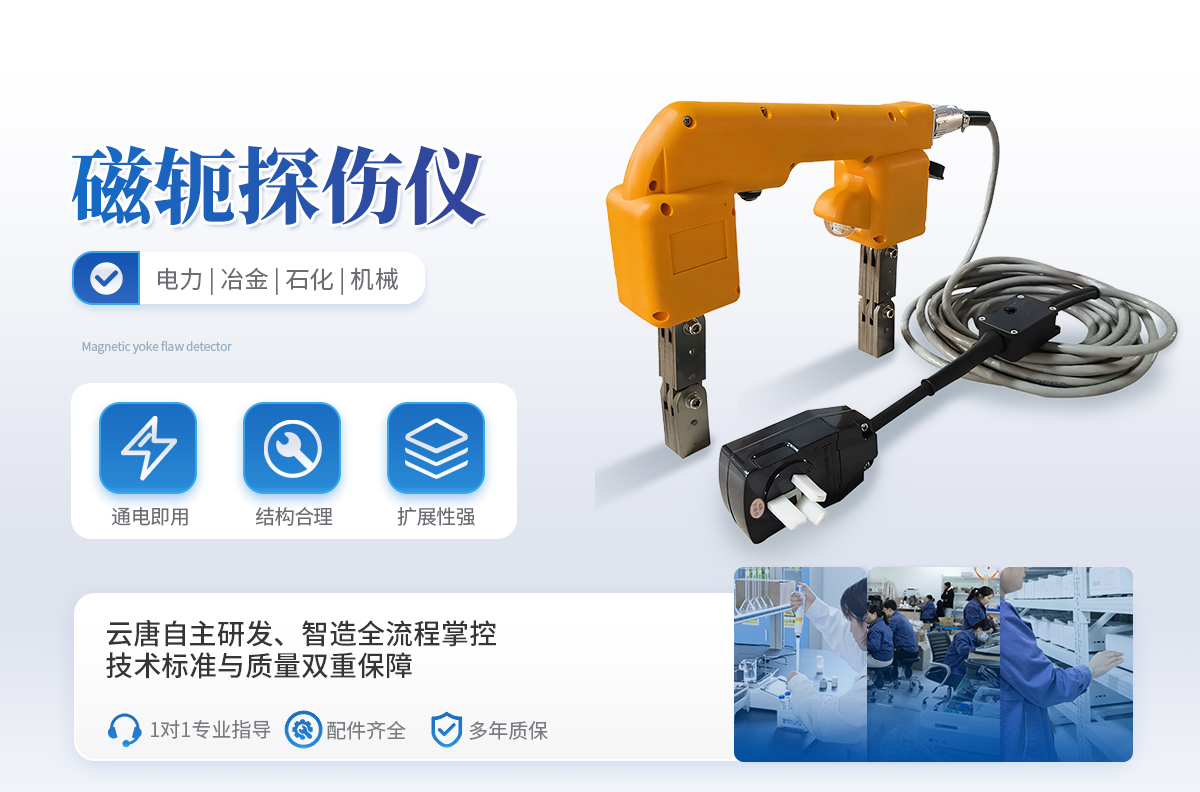 設備簡介: YT-CTS-N型電磁軛磁粉探傷儀,無主機設計,采用逆變交流鋰電池供電,無需外接電源即可產生交流磁場。核心部分采用單片機控制,輸出**、穩定。可根據工件的厚度自動調整輸出電流,減···