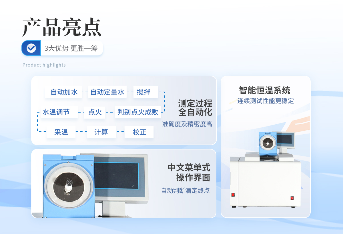微機(jī)全自動(dòng)量熱儀(觸屏制冷款),采用7吋液晶觸控屏操作,連接智能恒溫系統(tǒng),測(cè)試精度和穩(wěn)定性更好,用于測(cè)定煤炭、石油,矸石,生料等物質(zhì)的發(fā)熱量,符合GB/T213-2008《煤的發(fā)熱量測(cè)定方法》的要求。同時(shí)符合GB/T213-2008《煤的發(fā)熱量測(cè)定方法》;GB/T483-2007《煤炭分析實(shí)驗(yàn)方法一般規(guī)定》;GB/T384-2007《石油產(chǎn)品熱值測(cè)定方法》;JC/T1005-2006《水泥黑生料測(cè)定方法》等燃料熱值測(cè)定。