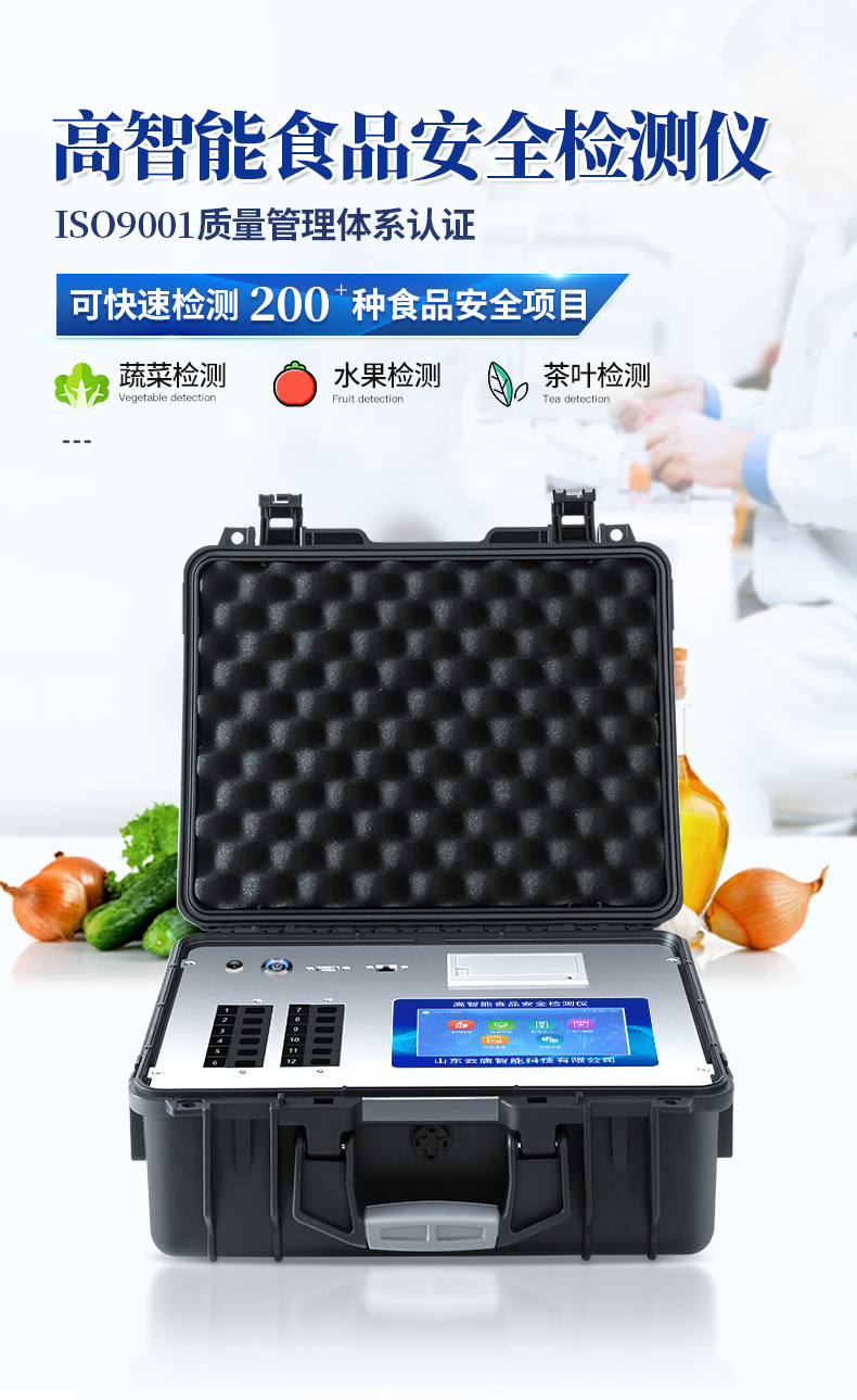 多功能果蔬肉類檢測(cè)儀可快速檢測(cè)幾十種項(xiàng)目,包含各種蔬菜水果中有機(jī)磷、氨基甲酸酯類農(nóng)藥,病害肉診斷:肉類新鮮度、肉中組胺、揮發(fā)性鹽基氮;各種肉食品中瘦肉精激素類殘留等現(xiàn)場(chǎng)的定性定量檢測(cè)。