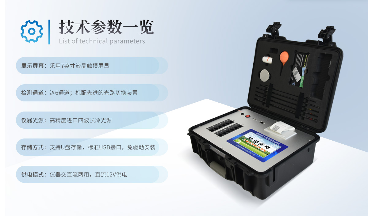| 土壤養(yǎng)分:●土壤銨態(tài)氮、土壤有效磷、土壤速效鉀、土壤硝態(tài)氮、土壤堿解氮、土壤全氮、土壤全磷、土壤全鉀、土壤有機質(zhì)(丘林法)、土壤有機質(zhì)(浸提法)、PH值、含鹽量、水分。●土壤中微量元素:土壤鈣、土壤鎂、土壤硫、土壤硅、土壤硼、土壤鐵、土壤銅、土壤錳、土壤鋅、土壤氯;●土壤重金屬:土壤鉛、土壤砷、土壤鎘、土壤鉻、土壤汞。 | 環(huán)境:土壤濕度、土壤溫度、土壤電導(dǎo)率、空氣溫度、空氣濕度、露點、大氣壓力、光照度、二氧化碳; | 肥料養(yǎng)分:●單質(zhì)肥:氮肥中銨態(tài)氮、肥料硝態(tài)氮、尿素氮、縮二脲、磷肥中磷、磷肥中水溶性磷、鉀肥中鉀;●復(fù)合肥全氮、復(fù)合肥全磷、復(fù)合肥全鉀;●有機肥全氮、有機肥全磷、有機肥全鉀、有機肥硝態(tài)氮、有機肥速效磷、有機肥速效鉀、有機肥酸解氮、有機質(zhì);●水溶性腐植酸(風(fēng)化煤)、水溶性腐植酸(褐煤)、水溶性腐植酸(泥炭)、游離態(tài)腐植酸(風(fēng)化煤)、游離態(tài)腐植酸(褐煤)、游離態(tài)腐植酸(泥炭);●水溶肥全氮、水溶肥全磷、水溶肥全鉀;●葉面肥全氮、葉面肥全磷、葉面肥全鉀;●各種肥料微量元素:肥料鈣、肥料鎂、肥料硫、肥料硅、肥料硼、肥料鐵、肥料銅、肥料錳、肥料鋅、肥料氯;●肥料重金屬:肥料鉛、肥料砷、肥料鎘、肥料鉻、肥料汞。 | 鮮作物營養(yǎng):●作物硝態(tài)氮、作物銨態(tài)氮、作物磷、作物鉀;●作物中微量元素:作物鈣、作物鎂、作物硫、作物硅、作物硼、作物鐵、作物銅、作物錳、作物鋅、作物氯;●作物中硝酸鹽、亞硝酸鹽、總糖量、還原糖、蛋白質(zhì)。 | 干植株營養(yǎng):●植株全氮、植株全磷、全鉀、植株中微量元素:植株全鈣、植株全鎂、植株全硫、植株全鐵、植株全錳、植株全硼、植株全鋅、植株全銅、植株全氯、植株全硅。 | 煙葉營養(yǎng):●全氮、全磷、全鉀、還原糖、水溶性總糖、硼、錳、鐵、銅、鈣、鎂等20項。 | 食品(水果、蔬菜等):●農(nóng)藥殘留、硝酸鹽、亞硝酸鹽、鉛、砷、鎘、鉻、汞、銅、鋁、二氧化硫、雙氧水、苯甲酸鈉、山梨酸、糖精鈉、甜蜜素、硫酸鎂、甲醛、吊白塊、硼砂、溴酸鉀、總酸、色素、蛋白質(zhì)、葡萄糖、淀粉酶等項。 | 水質(zhì)中:COD、氨氮、總磷、總氮、余氯、溶解氧、二氧化氯、水中氰化物;重金屬鉛、砷、鎘、鉻、汞;水中硝酸鹽、亞硝酸鹽、硬度、PH、鐵、銅、錳、鋅、鋁、硼、氯、硫、硅等 |