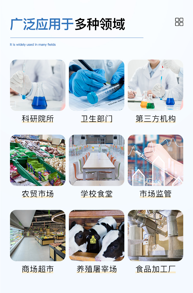 | 檢測方法:甲醇檢測方法符合《GB/T5009.48 蒸餾酒及配制酒衛生標準的分析方法》 | 儀器構成:由主機、樣品前處理器具和試劑包等構成,適于現場及實驗室使用 | 光路系統:采用進口超高亮發光二極管,光源和檢測器采用全固態結構,準確度和精密度高、穩定性強、光源可控;采用光源自動開關節能設計,光源使用壽命達10萬小時以上。 | 內置曲線:儀器具有內置工作曲線,無需配制標準溶液,只需要用配套試劑進行零點校正后,即可實現樣品的快速定量測定。 | 測量方式:樣品顯色和測量為為標準1cm比色皿,無需轉移,提高檢測精密度。 | 耗材配件:提供完備的專用前處理設備和耗材,一站式服務。 | 專用試劑盒:配備專用的預制試劑,縮短試劑配制時間,操作簡單,使用方便。 |