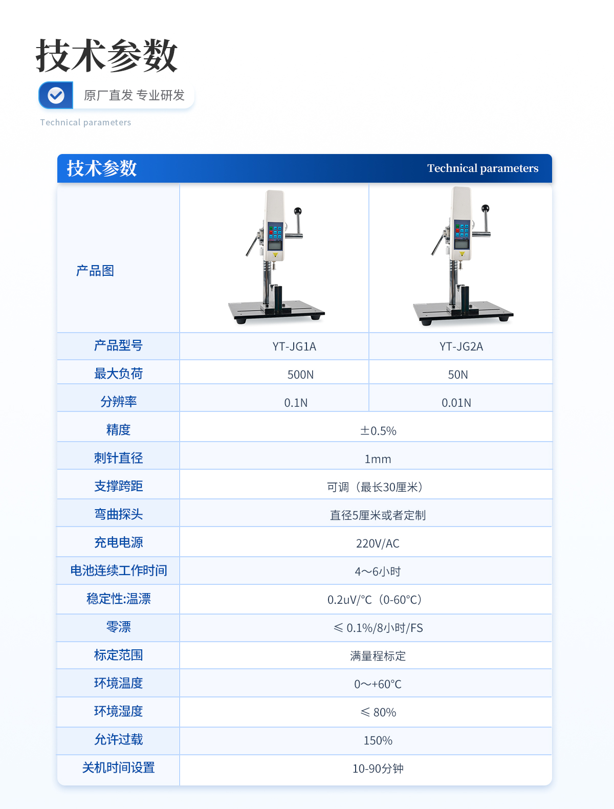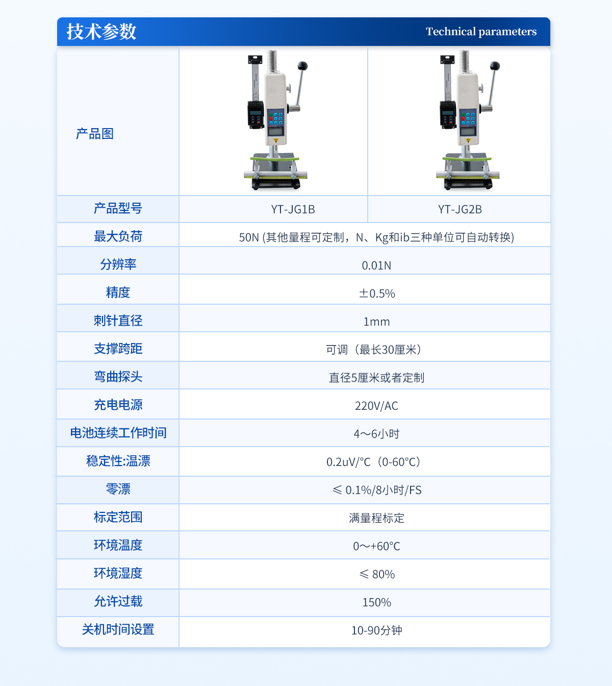 | **負(fù)荷:500N (其他量程可定制,N、Kg和ib三種單位可自動轉(zhuǎn)換) | 分辨率:0.1N | 精度:±0.5%; | 刺針直徑:1mm | 支撐跨距:可調(diào)(*長30厘米) | 彎曲探頭:直徑5厘米或者定制 | 充電電源:220V/AC; | 電池連續(xù)工作時間:4~6小時; | 穩(wěn)定性:溫漂:0.2uV/℃(0-60℃); | 零漂:≤ 0.1%/8小時/FS; | 標(biāo)定范圍:滿量程標(biāo)定; | 環(huán)境溫度:0~+60℃; | 環(huán)境濕度:≤ 80%; | 允許過載:150%; | 關(guān)機(jī)時間設(shè)置:10-90分鐘。 |