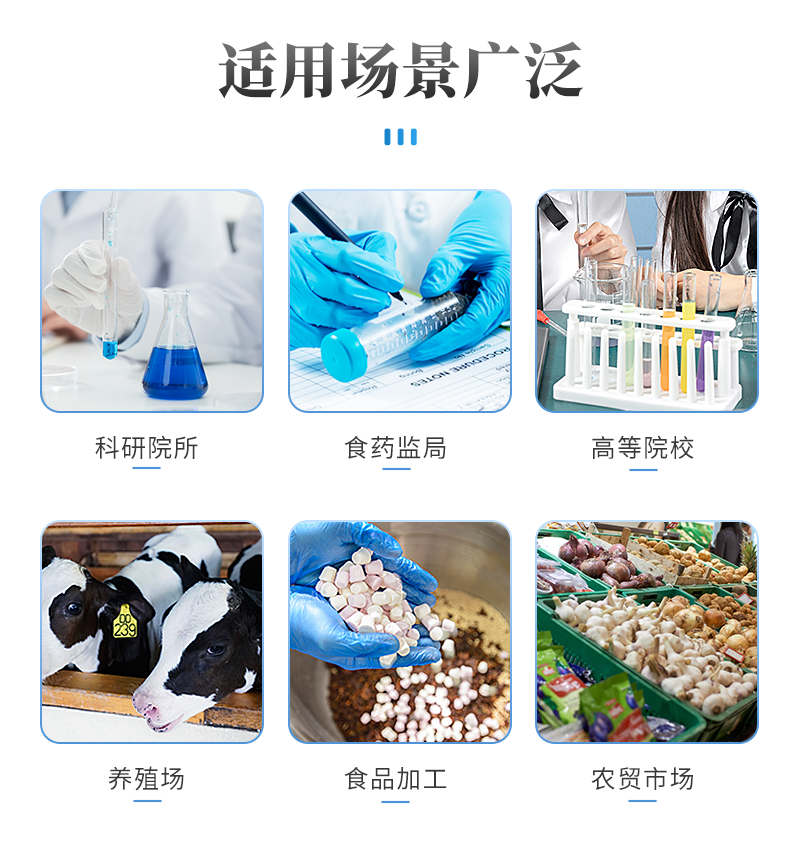 可快速定量檢測各類食品中的甲醛的含量,儀器預留其他項目檢測程序和端口,根據日后需求可方便的自主增加檢測項目。日后可升級為檢測,水產品,肉制品,面制品的綜合類型儀器。