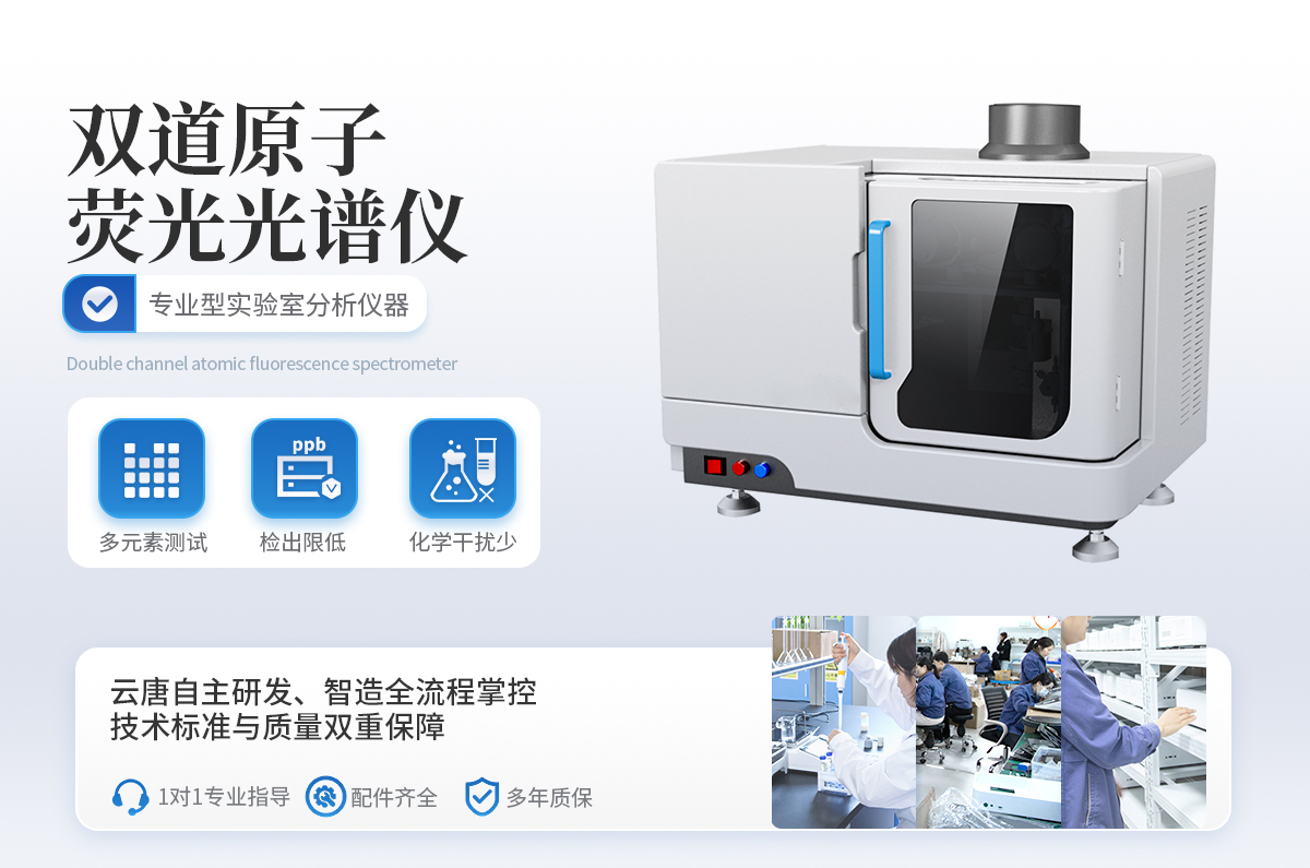 雙道原子熒光光譜儀廣泛應(yīng)用于汞(Hg)、砷(As)、銻(Sb)、鉍(Bi)、硒(Se)、碲(Te)、鎘(Cd)、鍺(Ge)、鉛(Pb)、錫(Sn)、鋅(Zn)等11 種元素的痕量、超痕量分析,體積小巧,性能穩(wěn)定,操作簡單。