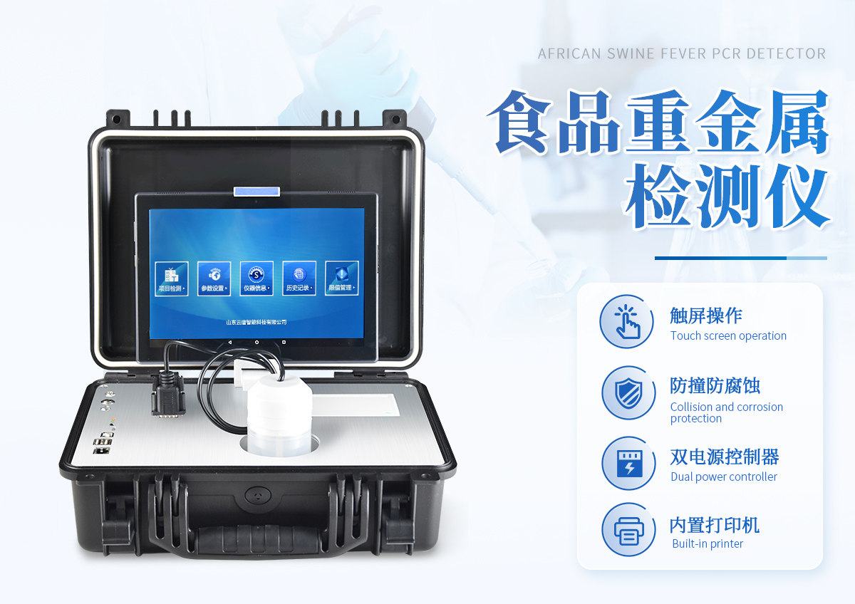 檢測項目: 可快速檢測重金屬鉛、鎘、銅、鋅、汞、砷等。 技術參數: 基本概述:便攜式箱體化一體機,采用防水、抗壓、防撞擊、防腐蝕箱體設計,滿足車載環境、無電源環境以及戶外檢測需求; 主