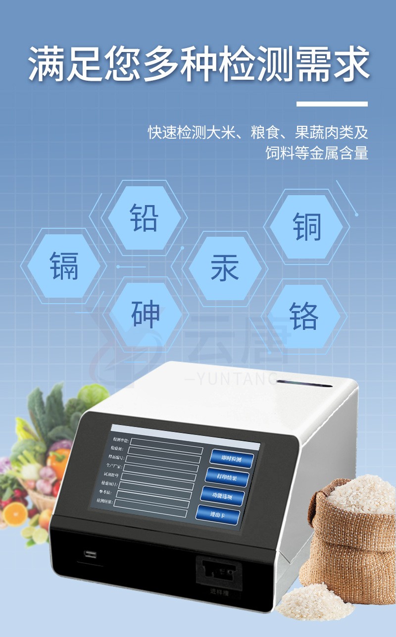 1.儀器能同時檢測大米、糧食、糧食制品、飼料、飼料原料中重金屬鎘、鉻、鉛、銅等指標。 2.具有免疫層析膠體金檢測快速檢測分析方法,可擴展檢測真菌毒素、農藥殘留,系統采用手提或拉桿設計,滿···