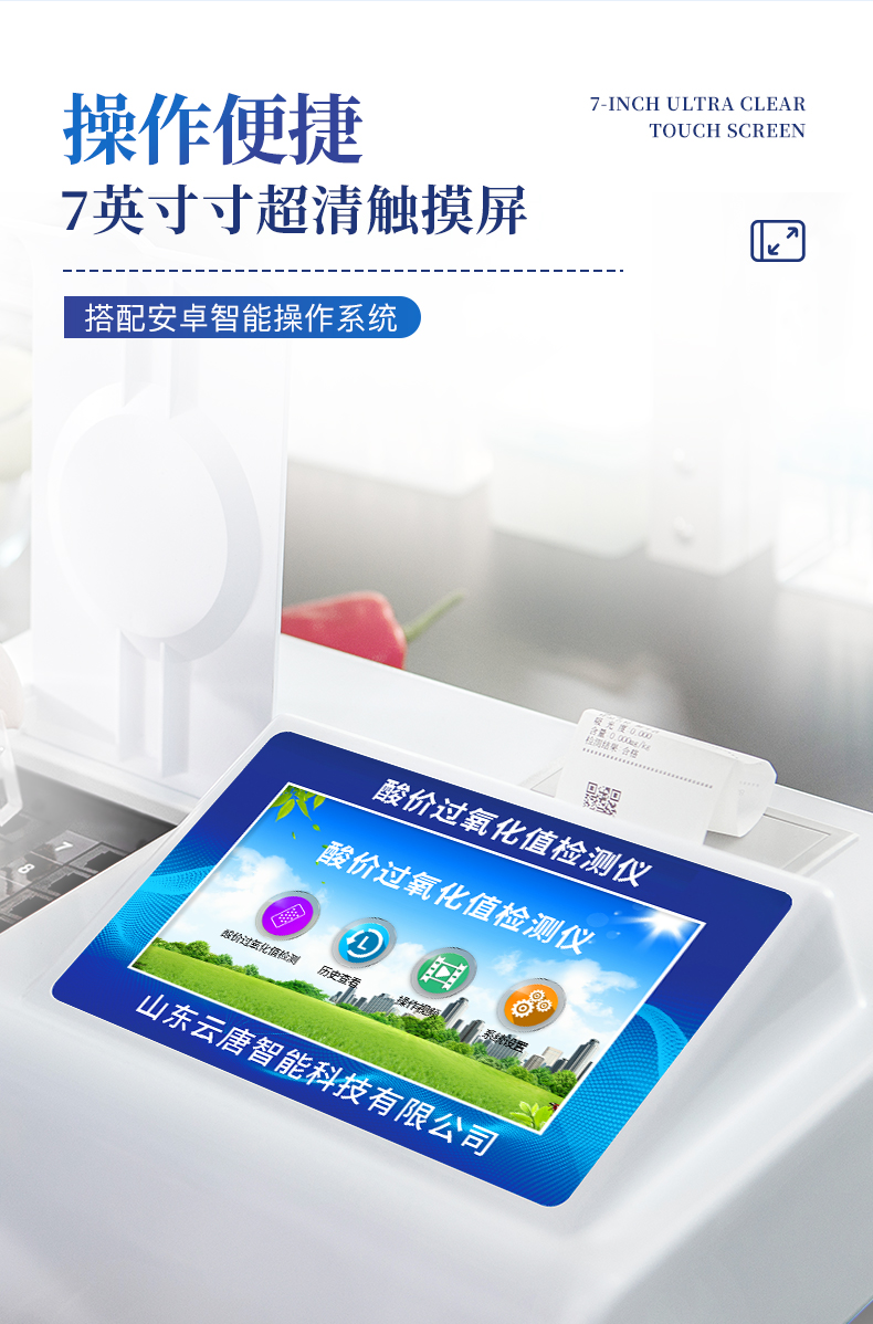 | 安卓智能操作系統(tǒng),采用更加**和人性化操作,儀器具有網(wǎng)線連接、wifi聯(lián)網(wǎng)上傳、GPRS無線遠傳功能,快速上傳數(shù)據(jù)。 | 一體化便攜式快檢設備,滿足現(xiàn)場及流動檢測使用需求,能夠在同一軟件下實現(xiàn)所有檢測項目的檢測,并可通過同一窗口直觀顯示檢測結果。 | 智能化程度高,儀器具有自檢功能:具有開機自檢和調零功能,具有自動檢測重復性功能。 | 檢測通道:≥12個檢測通道,可以同時測試多個樣品,每個樣品由程序控制分別獨立工作,不會互相干擾。 | 顯示方式:≥8英寸液晶觸摸屏顯示,人性化中文操作界面,讀數(shù)直觀、簡單。 | 配備新一代嵌入式熱敏打印機,可選擇手動打印或者自動打印,檢測完成可自動打印檢測報告和二維碼。 | 光源采用進口超高亮發(fā)光二極管,高精度、穩(wěn)定性強、光源可控、可以關掉不使用的光源,功耗更低。 | 采用USB2.0接口設計,方便數(shù)據(jù)的存貯和移動,并可隨時與計算機直接相連,并且可用計算機控制儀器。實現(xiàn)數(shù)據(jù)查詢、瀏覽、分析、統(tǒng)計、打印等。 | 儀器具有品類多種類樣品菜單庫,可靈活選擇檢測樣品,不同的檢測通道可同時檢測不同的樣品項目。 | 樣品處理簡單省力,整體操作快速、安全、便捷。 | 儀器具有自身保護功能,可設置用戶名及密碼,防止非工作人員操作等。 | 高靈敏度,高檢測精度,高重復性精度,掃描式高精度光學傳感器。 | 過氧化值檢測儀器具有重新校準、鎖定、恢復出廠設置功能。 | 結果判定線可修改,對照值標定值可保存,斷電不丟失數(shù)據(jù)。 |