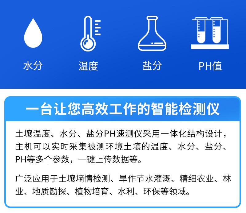 土壤水分測定儀采用FDR頻域反射原理,快速準確測量土壤中含水量,可對多處樣地、不同土壤深度的水分含量進行快速檢測和長期連續監測。廣泛應用于土壤墑情檢測、旱作節水灌溉、精細農業、林業、地質勘探、植物培育等領域。