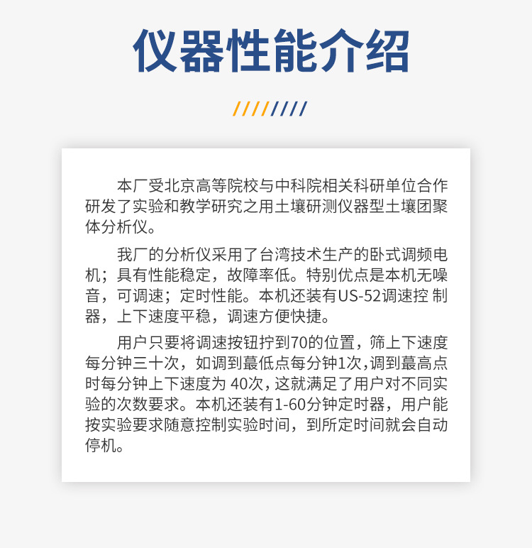 性能介紹: 本廠受北京高等院校與中科院相關(guān)科研單位合作研發(fā)了實驗和教學(xué)研究之用土壤研測儀器(YT-TRTL)型土壤團(tuán)聚體分析儀。我廠的分析儀采用了臺灣技術(shù)生產(chǎn)的臥式調(diào)頻電機(jī);具有性能穩(wěn)定,故···
