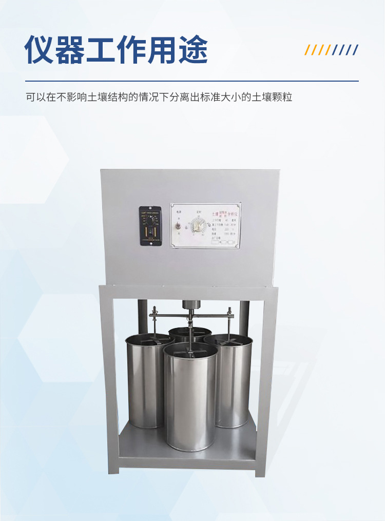 YT-TRTL型土壤團(tuán)聚體分析儀可以在不影響土壤結(jié)構(gòu)的情況下分離出標(biāo)準(zhǔn)大小的土壤顆粒。該儀器含有5個標(biāo)準(zhǔn)篩的孔徑(5.0mm、2.0mm、1.0mm、0.5mm、0.25mm)分離篩,通過分離篩在水中的上下震蕩,*后從土壤分離出5種粒徑的團(tuán)粒。可同時對4個樣品進(jìn)行分析。(注.5.0mm的篩子根據(jù)用戶的需求可調(diào)換成0.106mm的篩子)