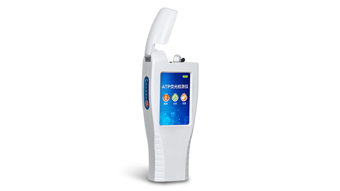 該設(shè)備為全新升級產(chǎn)品,大屏幕觸摸顯示屏,代替?zhèn)鹘y(tǒng)按鍵。操作采用生物化學(xué)反應(yīng)方法檢測ATP含量,ATP熒光檢測儀基于螢火蟲發(fā)光原理,利用“熒光素酶—熒光素體系”快速檢測三磷酸腺苷(ATP)。ATP拭子含有可以裂解細(xì)胞膜的試劑,能將細(xì)胞內(nèi)ATP釋放出來,與試劑中含有的特異性酶發(fā)生反應(yīng),產(chǎn)生光,再用熒光照度計檢測發(fā)光值,微生物的數(shù)量與發(fā)光值成正比,由于所有生物活細(xì)胞中含有恒量的ATP,所以ATP含量可以清晰地表明樣品中微生物與其他生物殘余的多少,用于判斷衛(wèi)生狀況。