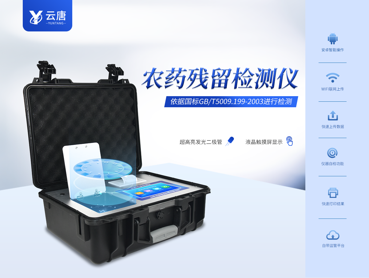 產(chǎn)品簡(jiǎn)介: 山東云唐智能科技有限公司生產(chǎn)的農(nóng)藥殘留檢測(cè)儀廣泛應(yīng)用于主要用于蔬菜、水果、茶葉、糧食、農(nóng)副產(chǎn)品等食品中農(nóng)藥殘留的快速檢測(cè),依據(jù)國(guó)標(biāo)GB/T5009.199-2003進(jìn)行檢測(cè),適用于果蔬茶···