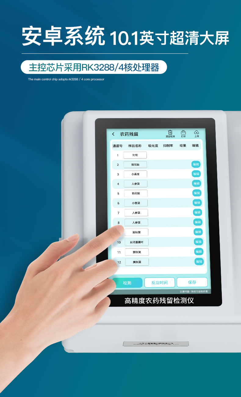 山東云唐智能科技有限公司生產(chǎn)的高精度農(nóng)藥殘留檢測儀廣泛應(yīng)用于主要用于蔬菜、水果、茶葉、糧食、農(nóng)副產(chǎn)品等食品中農(nóng)藥殘留的快速檢測,依據(jù)國標GB/T5009.199-2003進行檢測,適用于果蔬茶生產(chǎn)基地以及農(nóng)貿(mào)批發(fā)銷售市場現(xiàn)場檢測,餐館、學(xué)校、食堂、家庭果蔬加工前的安全速測等。