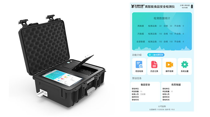 山東云唐智能科技有限公司生產的高智能食品安全檢測儀為集成化食品安全快速檢測分析設備,采用臺式一體化設計,可快速檢測200多種食品安全項目,包含非食用化學物質、濫用食品添加劑、農藥殘留、獸藥殘留、重金屬、病害肉、營養強化劑、抗生素類殘留、激素類殘留、真菌毒素類殘留、化學類殘留等項目的定性定量檢測。該高智能食品安全檢測儀為集成化食品安全快速檢測分析設備,目前已于食藥監局、衛生部門、高教院校、科研院所、農業部門、養殖場、屠宰場、食品肉產品深加工企業及檢驗檢疫部門等單位廣泛使用。