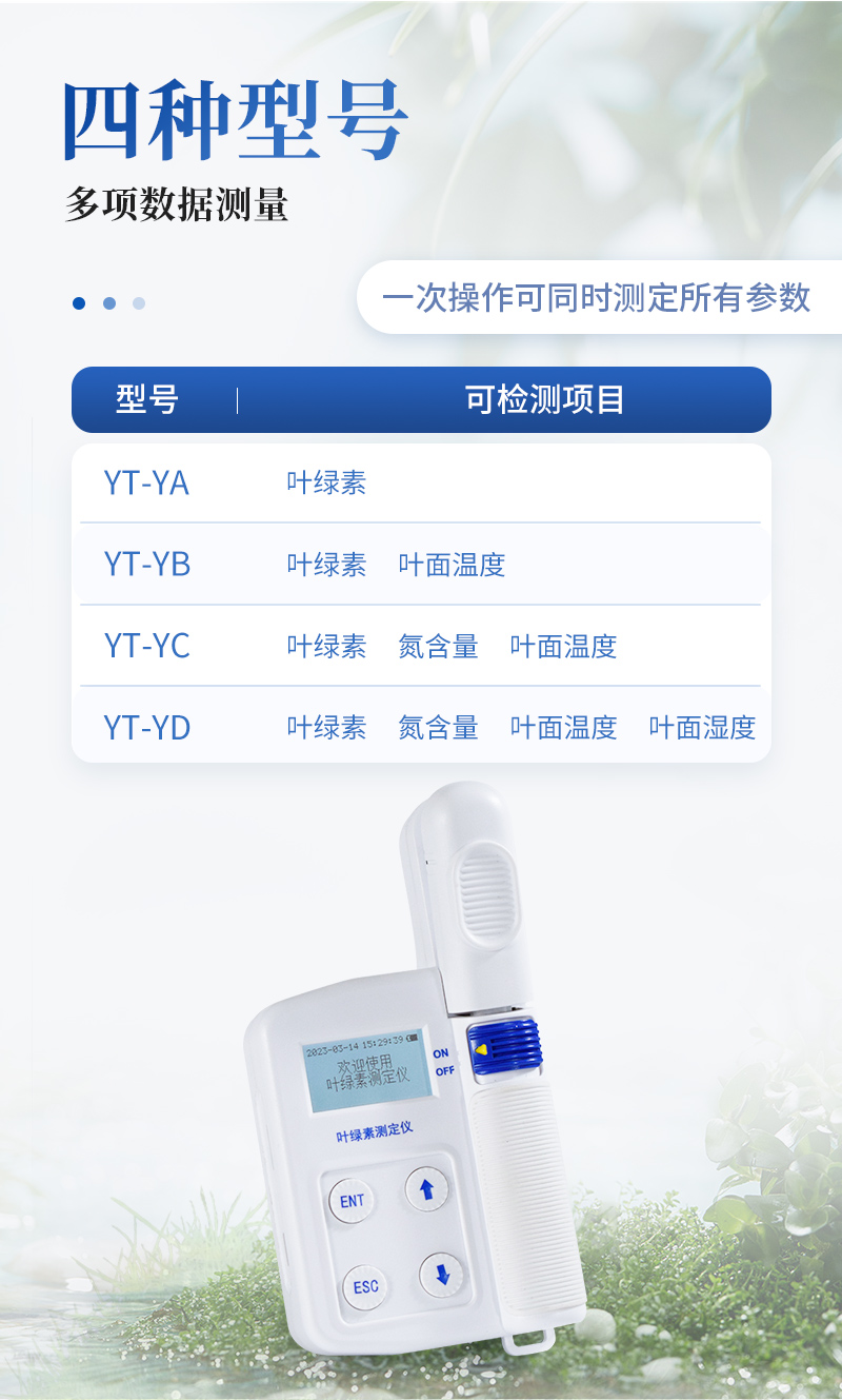 儀器用途:YT-YD葉綠素測定儀根據(jù)葉綠素光譜吸收規(guī)律,采用兩種不同的發(fā)光管照射葉片,通過測量透過葉片的光的強度計算出葉片內(nèi)的葉綠素相對含量或者綠色程度,從而為合理、適當(dāng)、及時施肥提供可···