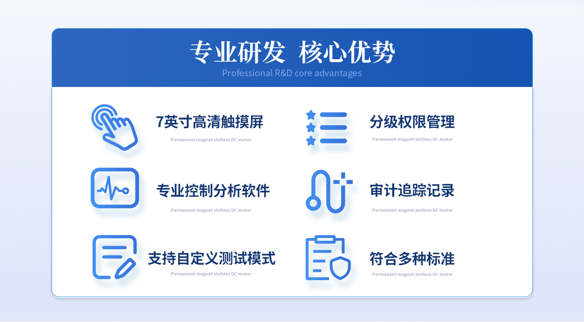 | 量程:0~200N | 其他可選量程:10、50、100、500N 等規(guī)格 | 檢測精度:優(yōu)于0.5% | 力解析精度:0.01N | 檢測速度:0.1-500mm/min (范圍內(nèi)可調(diào)) | 速度精度:≤±0.1% | 形變位移范圍:0~300mm | 位移解析精度:0.01mm | 外形尺寸:400mm(L)×340mm(W)×800mm(H) |