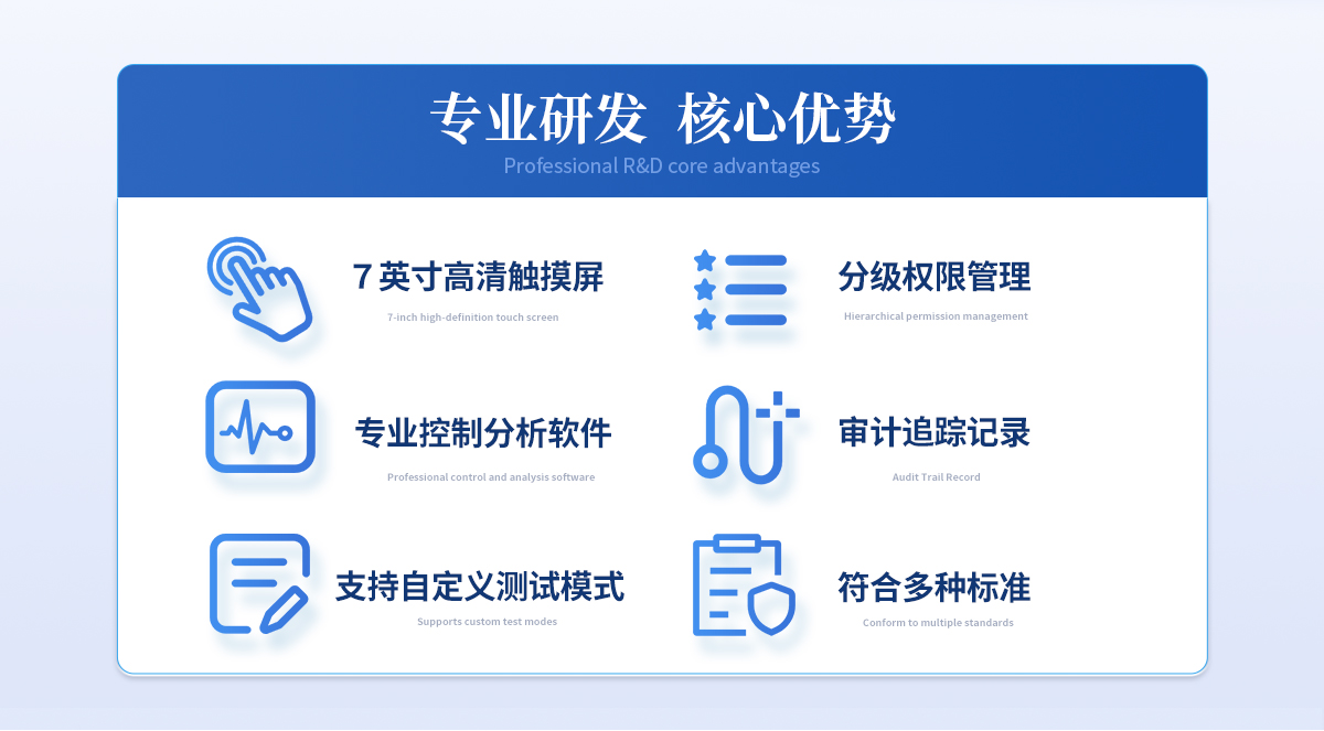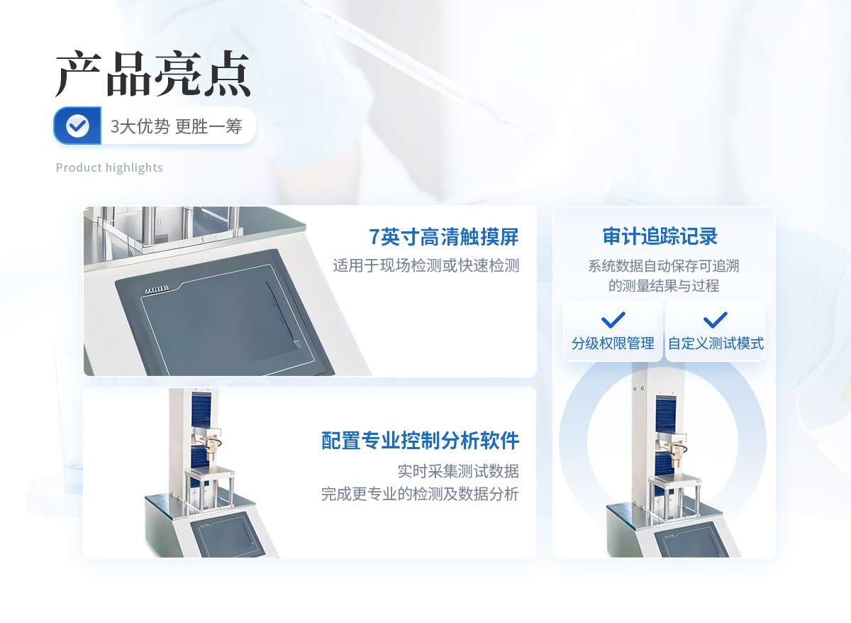 | 操作及控制系統 主機配置7英寸高清觸摸屏,可以直接使用觸摸屏操作質構分析儀,操作簡單,結果顯示 直觀,適用于現場檢測或快速檢測。 | 連接計算機使用,配置專業控制分析軟件,提供豐富的參數設置,進行更為復雜和精細 的測試控制,實時采集測試數據,完成更專業的檢測及數據分析。 | 測試項目及功能 可以應用在食品、制藥、乳制品、肉制品、化妝品、凝膠、糖果、果蔬、水鮮、藥材、煙草等樣品的物性學分析;可以量化獲取樣品的硬度、脆度、嫩度、粘性、彈性、韌 性、內聚性、咀嚼性、凝凍強度、拉伸強度、破裂強度、剪切強度、抗壓強度、穿透強度、蠕變特性、松弛特性等多項物性指標。 | GMP相關要求支持 | 儀器提供分級權限管理:三級別,多用戶。(用戶名+密碼登錄) | 儀器科實現審計追蹤記錄:系統數據自動保存可追溯的測量結果與過程。 | 質構分析儀軟件功能 | 測試方法(任選兩項): | 單壓縮、循環測試、松弛測試、蠕變測試、全質構測試、 拉伸測試、彎曲測試、剪切測試、穿刺測試、凝凍強度測試等。 | 系統開放測試條件參數,支持自定義測試模式。 |