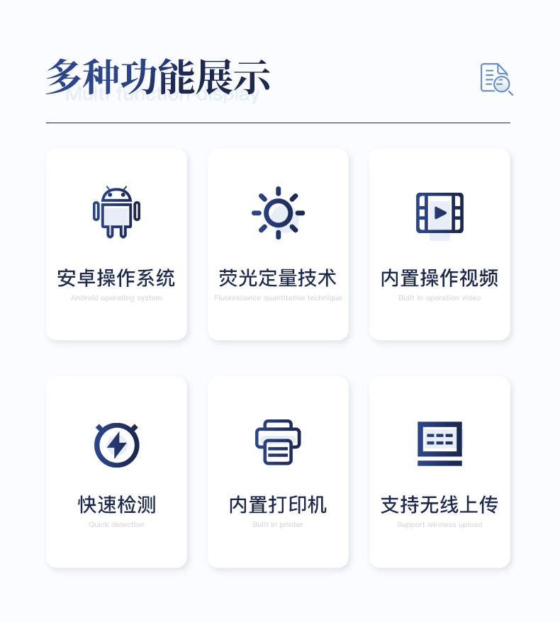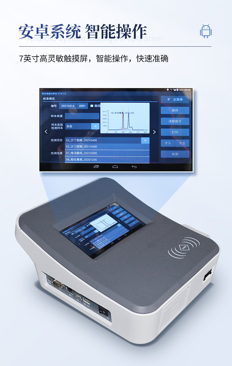 | 1、儀器自動(dòng)識別檢測卡條形碼上的檢測項(xiàng)目、樣本類型、檢測限、標(biāo)準(zhǔn)曲線,形成完整的檢測數(shù)據(jù)信息鏈。一卡一控,插卡后儀器自動(dòng)讀取檢測卡顯示的C、T線的熒光信號,依據(jù)檢測卡內(nèi)置的標(biāo)準(zhǔn)曲線,自動(dòng)計(jì)算結(jié)果;用戶可根據(jù)自身需求,選擇設(shè)定檢測限/定量限(內(nèi)控或****限量)。 | 2、檢測數(shù)據(jù)信息采集項(xiàng)目(包括但不限于):儀器至少支持以下檢測數(shù)據(jù)采集:①檢測項(xiàng)目;②樣本類型;③檢測樣本;④國家限量;⑤檢測者;⑥檢測單位;⑦檢測時(shí)間;⑧檢測線/定量限;⑨檢測編號;⑩內(nèi)控限量 樣本來源等,并支持?jǐn)?shù)據(jù)采集項(xiàng)目遠(yuǎn)程擴(kuò)展升級。 | 3、檢測數(shù)據(jù)采集方式:檢測數(shù)據(jù)信息采集項(xiàng)目中載明的:①-⑨項(xiàng)為儀器自動(dòng)識別采集,⑩項(xiàng)為手寫輸入。 | 4、檢測數(shù)據(jù)上傳方式:完成檢測后,儀器能自動(dòng)將檢測數(shù)據(jù)信息采集項(xiàng)目載明的全部檢測數(shù)據(jù)信息上傳至檢測監(jiān)管系統(tǒng)平臺(tái)。 | 5、接口:藍(lán)牙通訊接口;內(nèi)置無線WIFI,檢測數(shù)據(jù)實(shí)時(shí)傳輸?shù)綌?shù)據(jù)監(jiān)管平臺(tái),客戶可通過賬號登陸在網(wǎng)絡(luò)上實(shí)時(shí)查看檢測數(shù)據(jù) | 6、存儲(chǔ)空間:存儲(chǔ)空間16GB。 | 7、信息輸入:支持中英文手寫輸入。 | 8、本機(jī)數(shù)據(jù)管理:具有檢測數(shù)據(jù)存儲(chǔ)、查詢,批量數(shù)據(jù)刪除和打印等功能。 | 9、檢測項(xiàng)目管理:儀器支持檢測項(xiàng)目及對應(yīng)國家限量遠(yuǎn)程增加、刪除等維護(hù)管理。 | 10、操作權(quán)限管理:儀器支持檢測操作人員使用賬號、密碼登陸儀器的功能,支持賬號、密碼在監(jiān)管系統(tǒng)平臺(tái)進(jìn)行驗(yàn)證。 | 11、在線學(xué)習(xí):內(nèi)置檢測項(xiàng)目操作流程簡圖,教學(xué)軟件可實(shí)時(shí)在線更新。 | 12、工作溫度:5-40℃,相對濕度:10%-90%。電源電壓220V±22V,頻率50Hz±1Hz,額定功率40W,與電源的連接方式:可拆卸電源線。 | 13、恒溫孵育器 | (1)適用于定量膠體金試紙卡和反應(yīng)液體準(zhǔn)確控溫反應(yīng),以提高準(zhǔn)確性; | (2)孵育器卡槽數(shù)6個(gè),每個(gè)卡槽時(shí)間獨(dú)立控制; | (3)插入卡條后自動(dòng)倒計(jì)時(shí),倒計(jì)時(shí)結(jié)束自動(dòng)報(bào)警,并記錄超時(shí)時(shí)間; | (4)內(nèi)部恒溫控制,控溫溫度:37℃,控溫精度≤0.5℃,升溫速度≤8min,溫度均勻性≤0.3℃,實(shí)時(shí)溫度顯示精度:0.1℃。 |