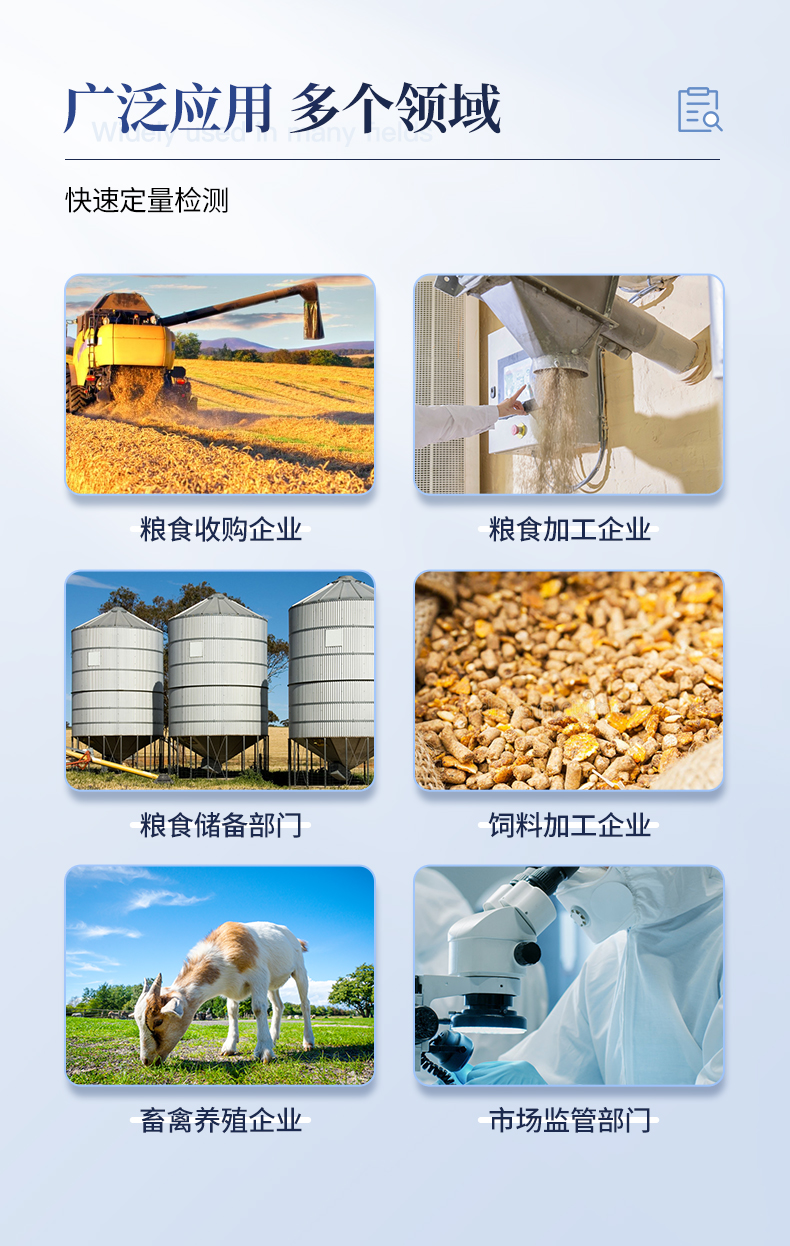 真菌毒素?zé)晒舛糠治鰞x可快速檢測糧食、飼料、谷物、食用油、調(diào)味品中如玉米、大米、小麥、大麥、糙米、麩皮、稻谷、豆粕、米糠、飼料中的黃曲霉毒素B1、黃曲霉毒素M1、玉米赤霉烯酮、嘔吐毒素、伏馬毒素,杜絕毒素污染,維護(hù)食品安全。