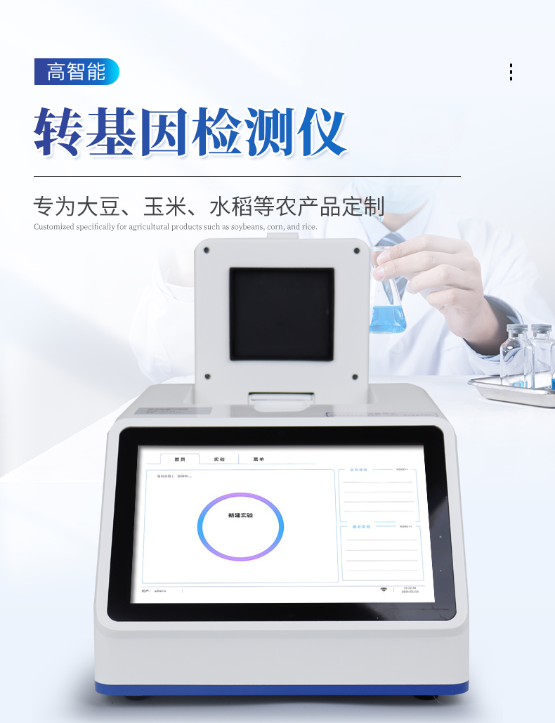 產品簡介:本款轉基因PCR檢測儀專為大豆、玉米、水稻等農產品定制,基于實時熒光定量技術,快速精準檢測轉基因成分。便攜易用,快速出結果,適配田間、種子篩選等場景,為種植合規與品質管控提供···